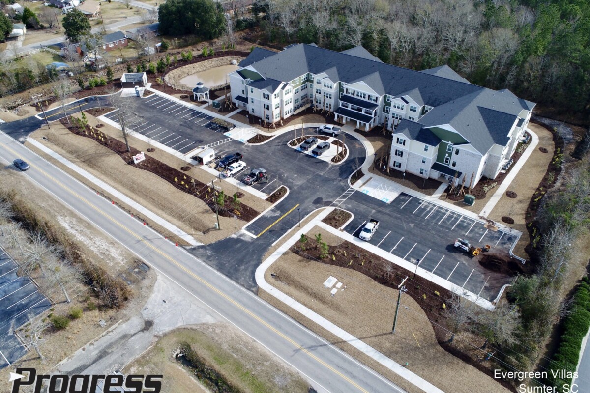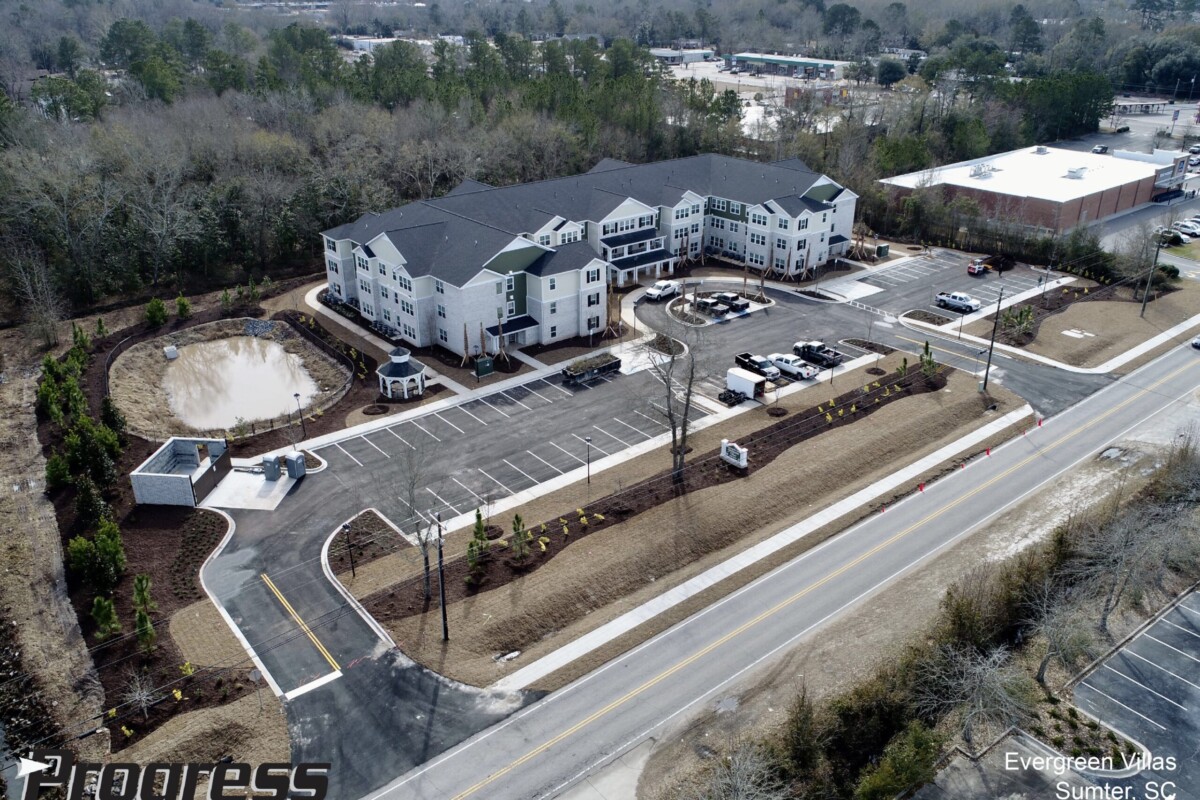 Evergreen Villas is a 49 unit Senior Affordable Housing project in Sumter, South Carolina. Evergreen features two-bedroom units in a three-story conditioned corridor building type. Also featured is an attached clubhouse and amenity area that includes a computer center, leasing office, kitchen and multipurpose room, reading room, game room, and a laundry area. Interior individual storage areas are located throughout. The project is funded with SCSHFDA tax credits.