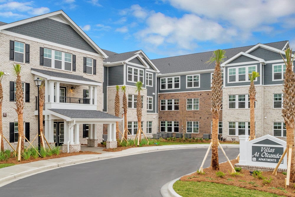The Villas at Oleander, a 49 unit Senior Affordable Housing project in Myrtle Beach, South Carolina. The Villas at Oleander features one and two bedroom units in a three-story conditioned corridor building type. Also featured is an attached clubhouse and amenity area that includes a computer center, leasing office, kitchen and multipurpose room, reading room, game room, and a laundry area. Interior furnished gathering areas are located throughout. The project is funded with SCSHFDA tax credits.